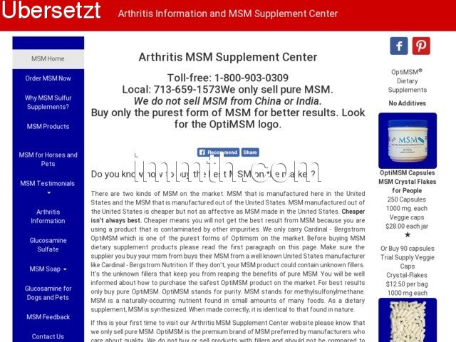 Arthritis MSM Supplement Center - Kaufen, die beste MSM auf dem Markt - Wir verkaufen reines MSM. Wir führen nur Kardinal-Bergstrom OptiMSM, das ist eine der reinsten Formen von Optimsm auf dem Markt.